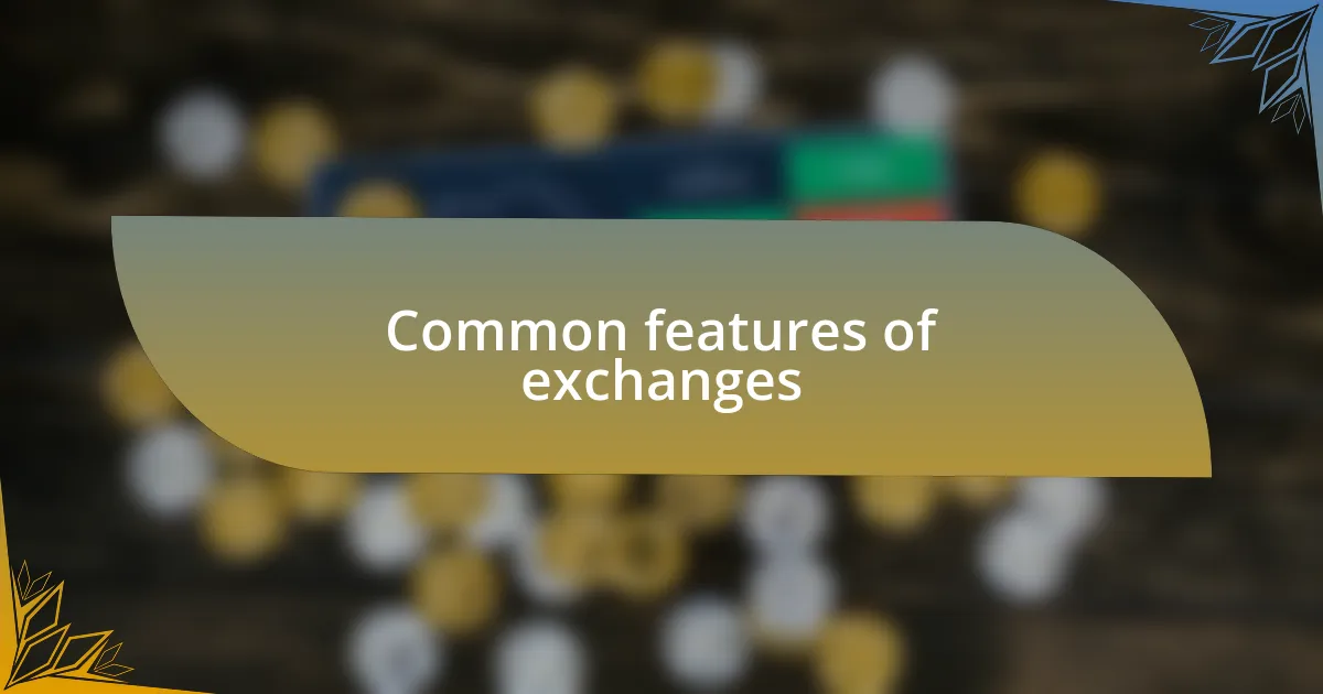 When I think about common features of exchanges, the user interface stands out as a key element. I’ve navigated several exchanges where a clean, well-designed interface made my trading experience enjoyable. I remember one particular exchange with a cluttered layout that left me feeling overwhelmed—have you ever found yourself lost in an app’s complexity while trying to make a quick trade?